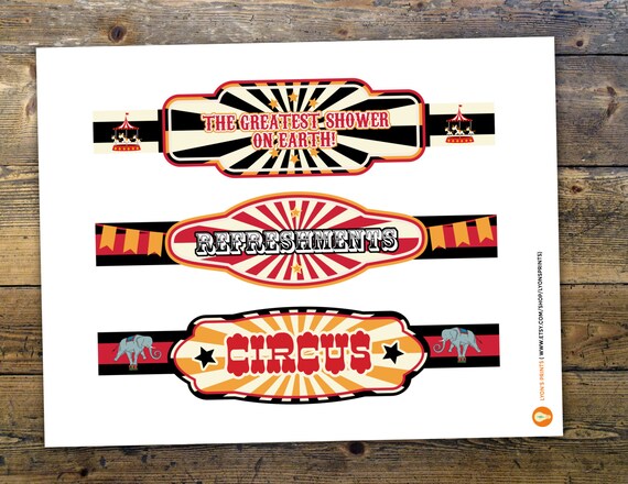 vintage circus water bottle labels